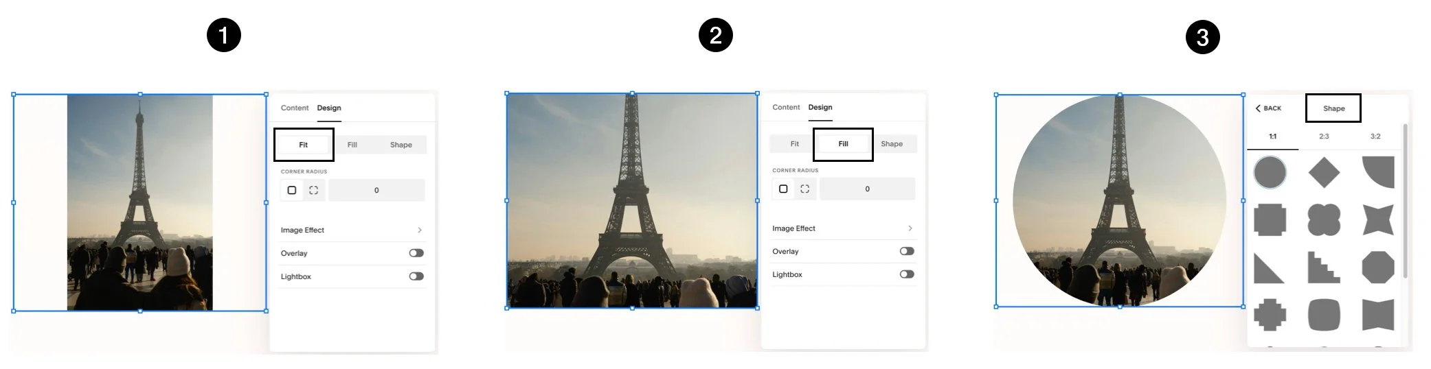 Comparison between 3 types of image cropping: Fit, Fill and Shape
