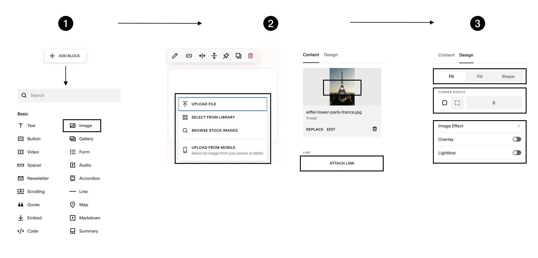 Step 3: To adjust styling, go to the "Design" tab in your image block settings. There are several options, such as changing the shape of your image, adding rounded corners, or a colored overlay. Click Save.